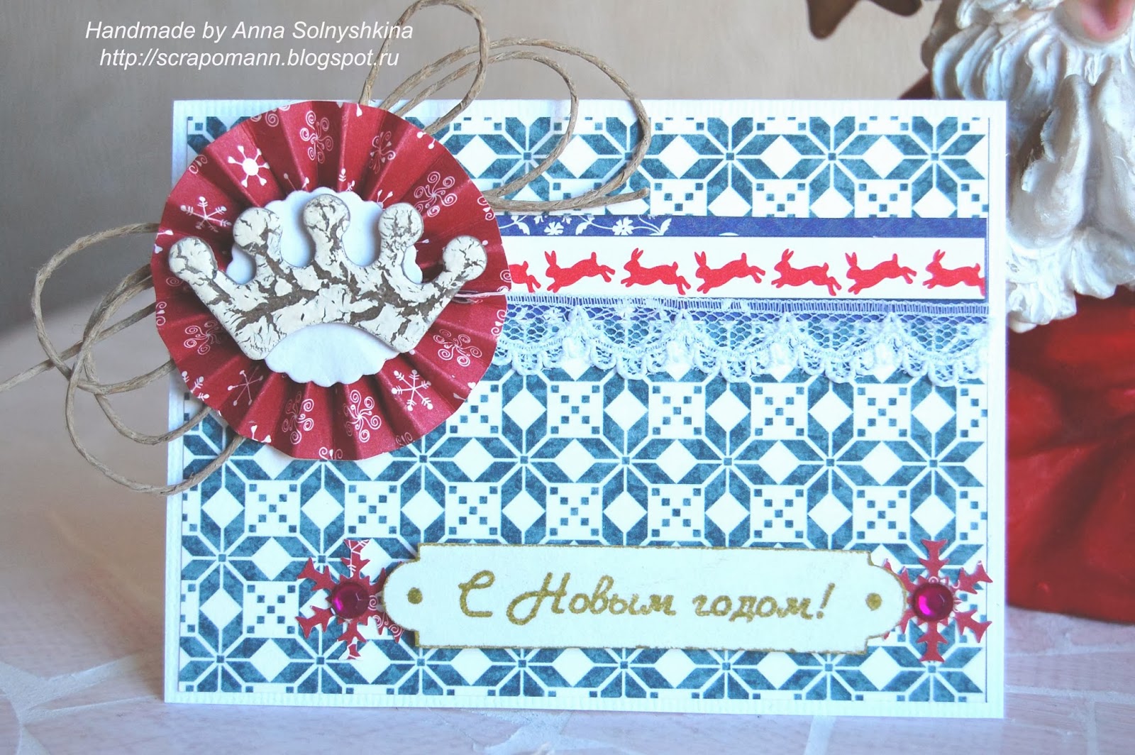 Совсем забыла, друзья, показать вам открыточку новогоднюю))) Идея возникла после просмотра работ ДК блога Улыбаемся и скрапим , там сейчас проходит задание с очень нежным скетчем.. мне почему то он показался очень новогодним.. может потому что настроение уже мандариновое))